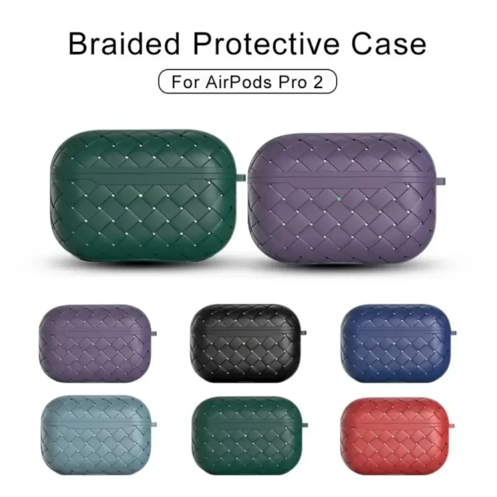 Made from premium-grade silicone, the case fits perfectly around your AirPods, offering a soft-touch feel and a secure grip. The woven texture adds both elegance and function — easy to hold, hard to slip. With precise cutouts for charging and easy access, it keeps convenience right where you need it.