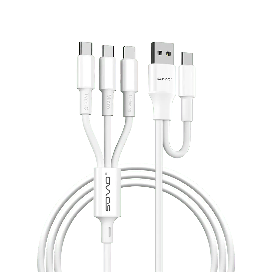 Introducing the SOVO SC-501 3-in-2 Premium Quality Fast Charging Cable | 2025 Edition, now available at an affordable price in Pakistan from Dynamite Accessories. This versatile cable is designed to meet all your charging needs with its 3-in-1 functionality, allowing you to charge multiple devices simultaneously. The durable construction ensures long-lasting performance, while the fast charging capabilities save you time and keep you connected on the go. Say goodbye to tangled cords and slow charging speeds – the SOVO SC-501 is here to streamline your charging experience. Upgrade to the 2025 Edition today and enjoy the convenience and reliability this cable has to offer.